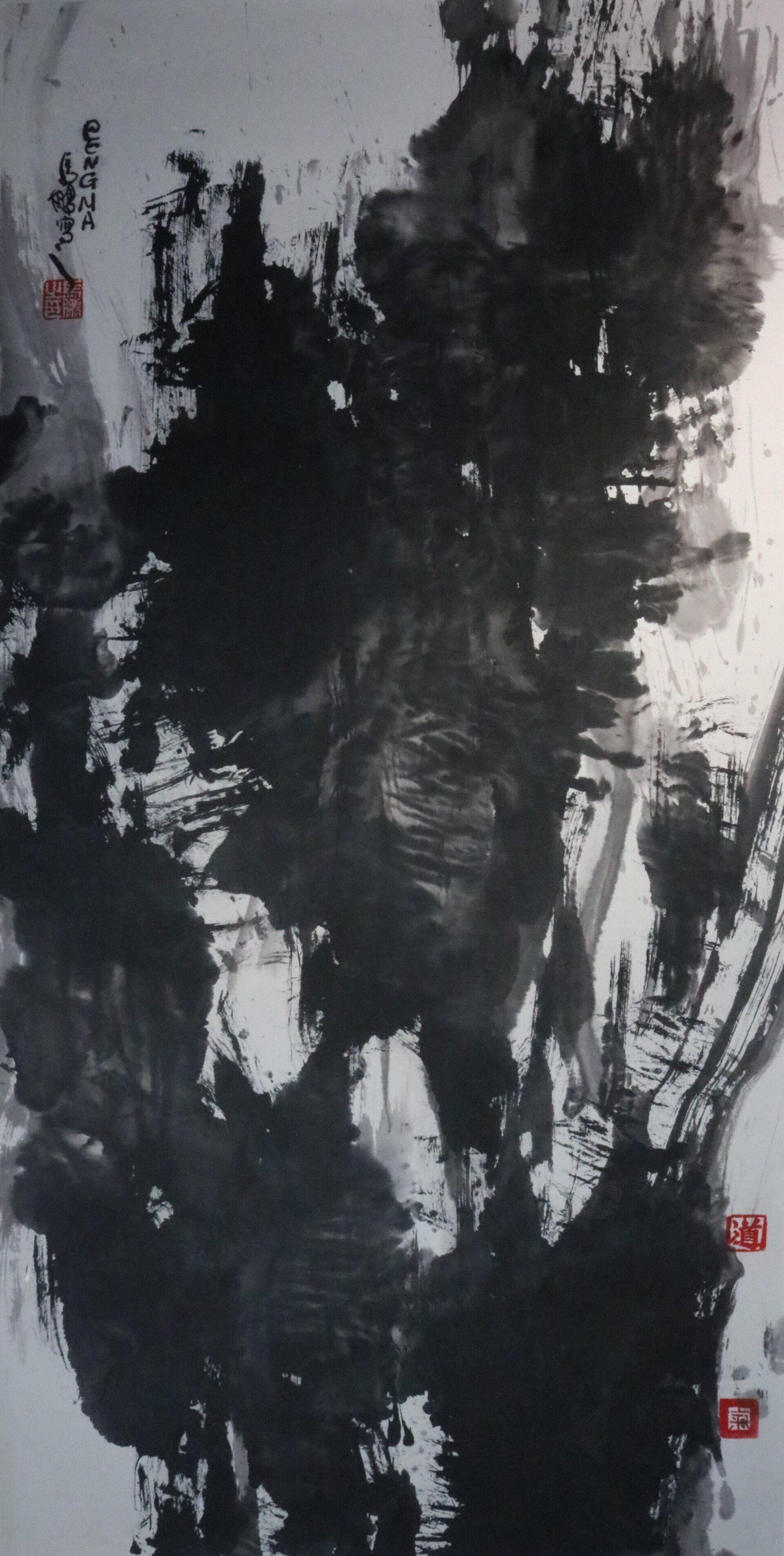 In order to create a new form of contemporary Chinese brush painting, I continue to study and practice the traditional art form and at the same time embrace Western art forms and media. I push the limit of paper and water constantly in my experiments to create a special emotional tone.